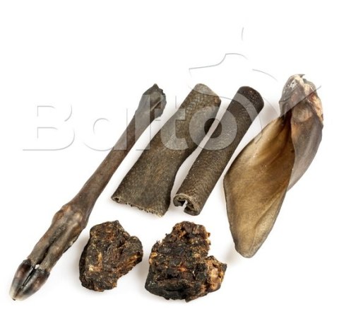 Zestaw z dziczyzny: mięso, skóry, uszy i racice z dziczyzny.