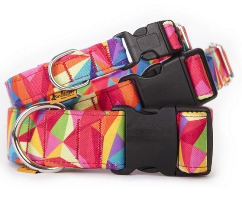 Regulowane obroże dla psa AMERICA są wykonane z drukowanego wodoodpornego materiału. Wielokolorowe obroże w modne i wyraziste wzory są odporne na ścieranie. Obroża została wyposażona w wygodne i solidne zapięcie typu klik-klak, które jest wykonane z wysokiej jakości, odpornego na trudną pogodę plastiku. Do zapięcia smyczy służy metalowe kółko, które zostało pokryte chromem. Dzięki temu po kontakcie z wodą nie zardzewieje.
