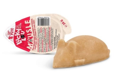 Realizując naszą misję stworzenia najlepszej na świecie karmy dla kotów, stworzyliśmy kolejny rozkoszny przysmak: przekąskę w kształcie myszy. Świetnie, prawda? Najlepszy pasztet o naprawdę najlepszym smaku Lucky Lou. Ze względu na kuszący kształt myszy, koty nie mogą powstrzymać się od podchodzenia do niej, aby ją zbadać i skubać. Mäusle są po prostu pyszne!