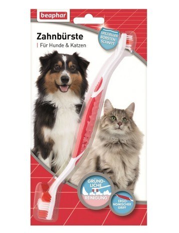 Beaphar szczoteczka do zębów, w połączeniu z pastą do zębów to produkty oferujące optymalną ochronę zębów psa. Wcześnie formująca się płytka nazębna musi być usuwana, aby zapobiec brzydkiemu zapachowi i próchnicy zębów. Dwugłowicowa Szczoteczka Beaphar może być używana przez wszystkie psy różnych rozmiarów. Szczoteczka jest specjalnie ukształtowana tak, aby możliwie jak najlepiej przystosowywała się do zębów psa. Poszczególne rzędy włosia pozwalają wyczyścić wszystkie zęby oraz przestrzenie międzyzębowe, dlatego problem z dotarciem do trudno dostępnych miejsc nie istnieje. Gumowany, wzmocniony uchwyt pozwala na bezpieczną obsługę i prowadzenie szczoteczki. Ponadto miękkie i elastyczne włosie zapewnia dokładne czyszczenie zębów i delikatną pielęgnację wrażliwych dziąseł.