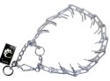 Oba końce właściwej obroży połączone są dodatkowo łańcuszkiem zaciskowym potęgującym efekt szkoleniowy.